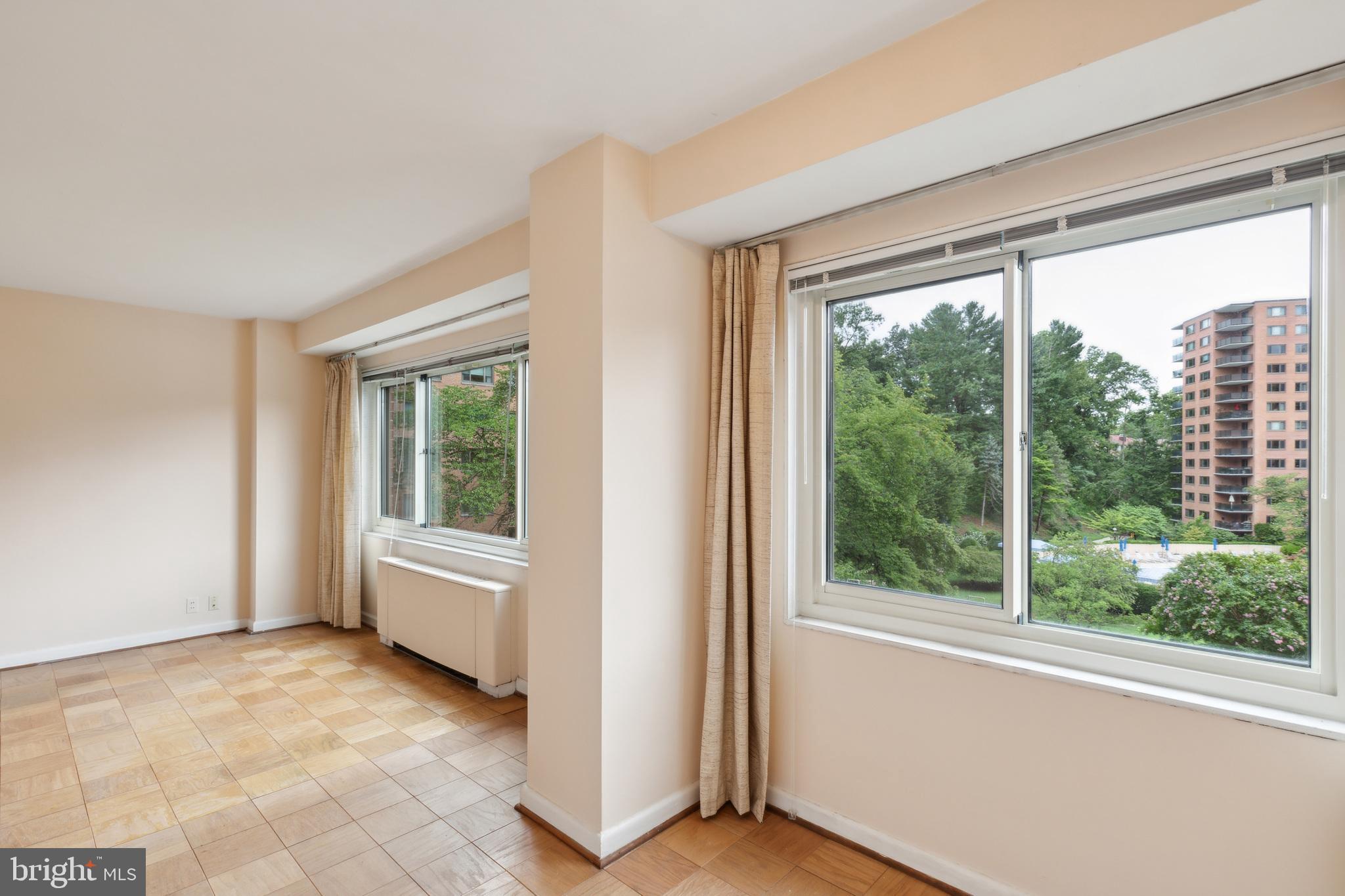 The Towers Condominium in sought-after Wesley Heights. Oversized windows bring in abundant natural light, creating an open and airy living space that feels bright and inviting. The studio layout offers a spacious main living area with plenty of flexibility for living, dining, and sleeping arrangements. Galley kitchen, ample storage cabinet. Full bath and walk-in closet. The Towers offers full-service living with a 24-hour concierge, outdoor swimming pool, tennis courts, fitness center, sauna, library, party and game room, and beautifully landscaped grounds across approximately ten acres. On-site conveniences include dry cleaning services and well-maintained gardens with walking paths. Ideally located near Archibald-Glover Park, scenic trails, neighborhood dining including Chef Geoff’s and Wagshal’s, Starbucks, shopping, and American University. All utilities are included in the monthly condo fee. Five separately deeded parking spaces are available and may be conveyed with the unit or sold separately.